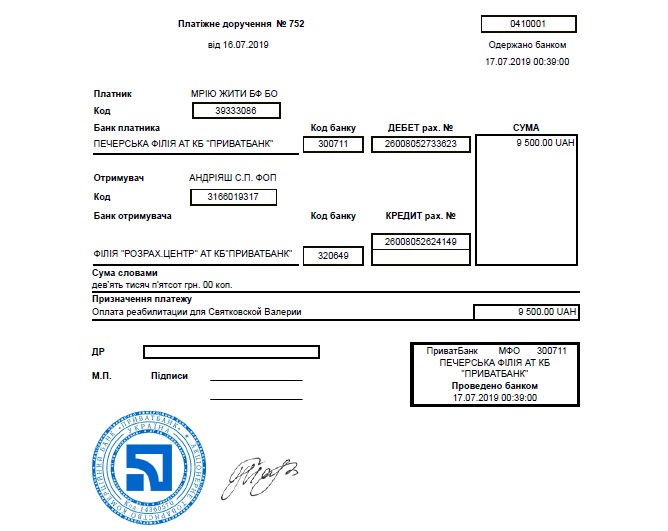 Благодійний фонд “Мрію Жити”, завдяки небайдужим і чуйним людям оплатив реабілітацію для Святковських Валерії та Дениса.