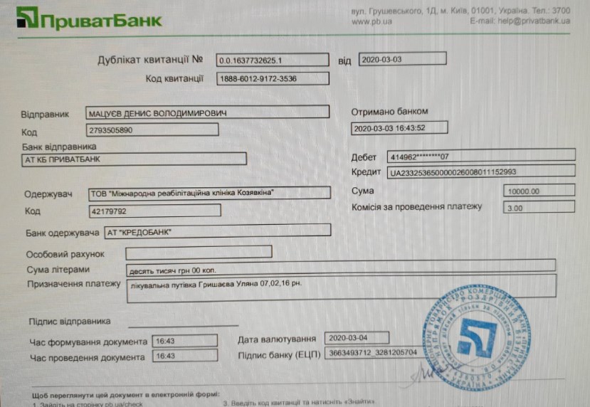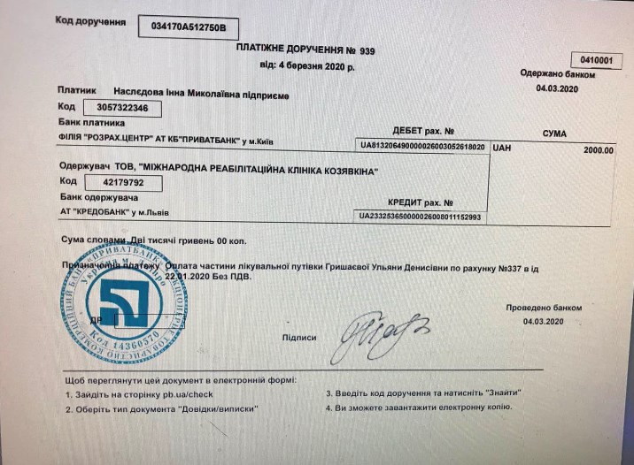 Благодійний фонд “Мрію Жити”, завдяки небайдужим і чуйним людям оплатив реабілітацію для Гришаєвої Уляни