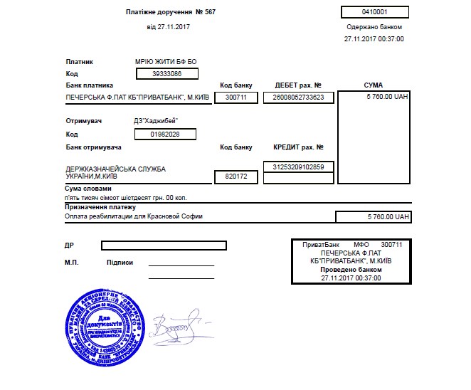 Благодійний фонд “Мрію Жити”, завдяки небайдужим і чуйним людям оплатив реабілітацію та купив медикаменти для Красновой Софії