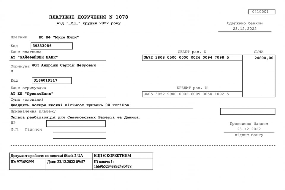 Благодійний фонд “Мрію Жити” отримав грант та оплатив реабілітації для дітей з діагнозом ДЦП – Святковські Денис і Валерія, Настенко Макар, Єрмольева Анастасия.