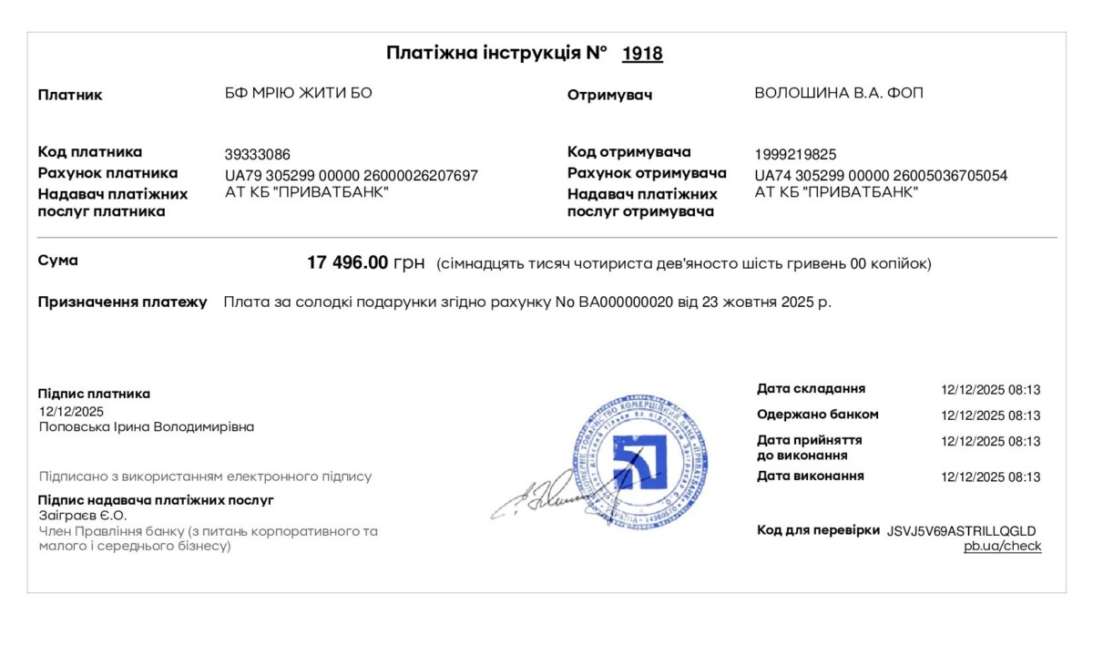 БО БФ “Мрію жити” висловлює щиру подяку нашим меценатам та партнерам — Шафа та Volonter by Prom – платформа для збору коштів — за фінансову підтримку, завдяки якій вдалося закупити новорічні подарунки для дітей з інвалідністю.
