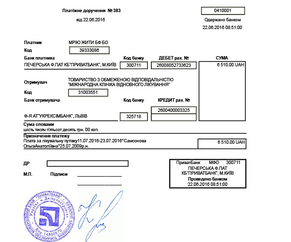 Призначення платежу: Благодійна допомога